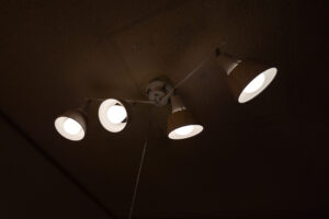 シーリングライトとフロアライトの電気調光が自由に調節可能。